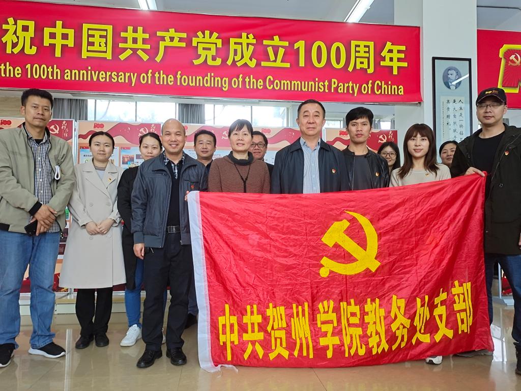 在图书馆党支部书记张百顺同志的带领下,教务处党支部党员一同在图书馆党史主题读物展厅阅览了中国共产党成立100周年以来的党史书目、书籍展。